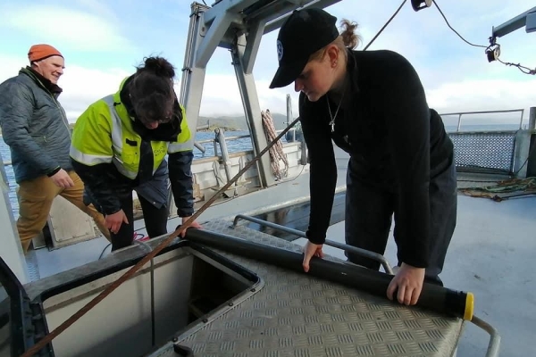 A team of scientists are at sea off the coast of Gisborne onboard NIWA research vessel Tangaroa, deploying sensors ...